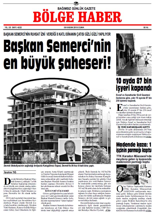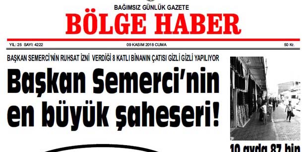 09/11/2018 TARİHLİ BÖLGE HABER GAZETESİ... SABAH BAYİLERDE...