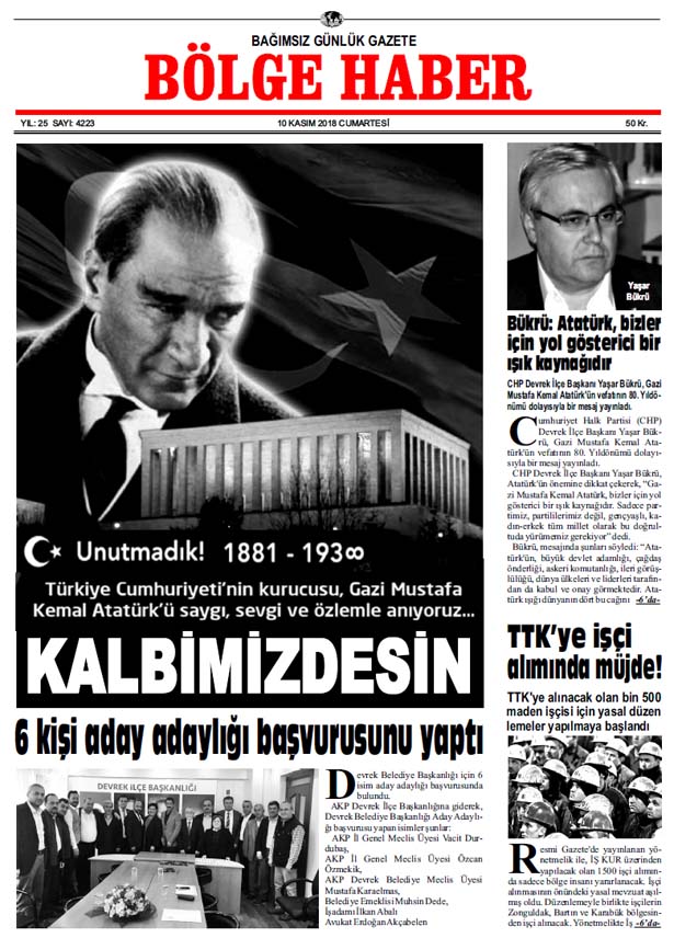 10/11/2018 TARİHLİ BÖLGE HABER GAZETESİ... SABAH BAYİLERDE...