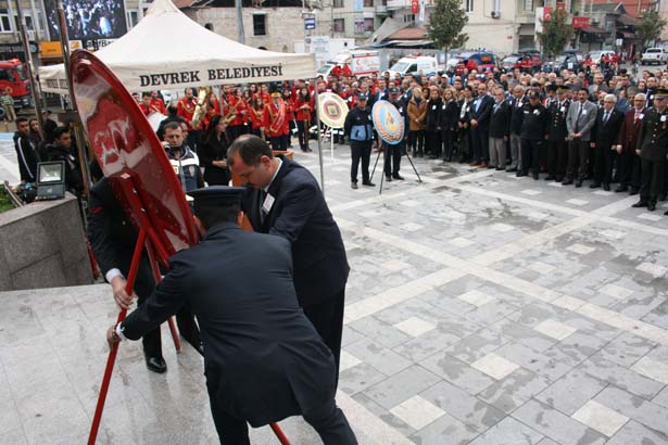 Anma töreni Devrek Kaymakamlığı önündeki Atatürk Anıtı'na Devrek Kaymakamı Tolga Polat ve Devrek Belediye Başkanı Mustafa Semerci tarafından çelenk sunulmasıyla başladı. Çelenklerin sunulmasının ardından çalınan sirenler eşliğinde iki dakikalık saygı duruşunda bulunuldu. İstiklal Marşı’nın okunmasının ardından Atatürk Kültür Merkezi’ndeki anma programına geçildi.