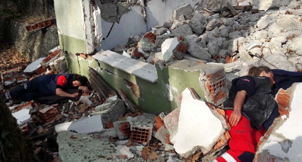Kampta gerçekleştirilen deprem tatbikatı ise gerçeğini aratmadı. Deprem bölgesinde bulunmamızdan dolayı senaryo gereği Devrek’te meydana gelebilecek bir depremde çöken binaların ve beton yığınlarının altında kalan yaralılar için kurtarma çalışması başlatıldı. Ekipler, yaralıları en güvenli şekilde zarar vermeden yerlerini tespit ederek kurtardı.