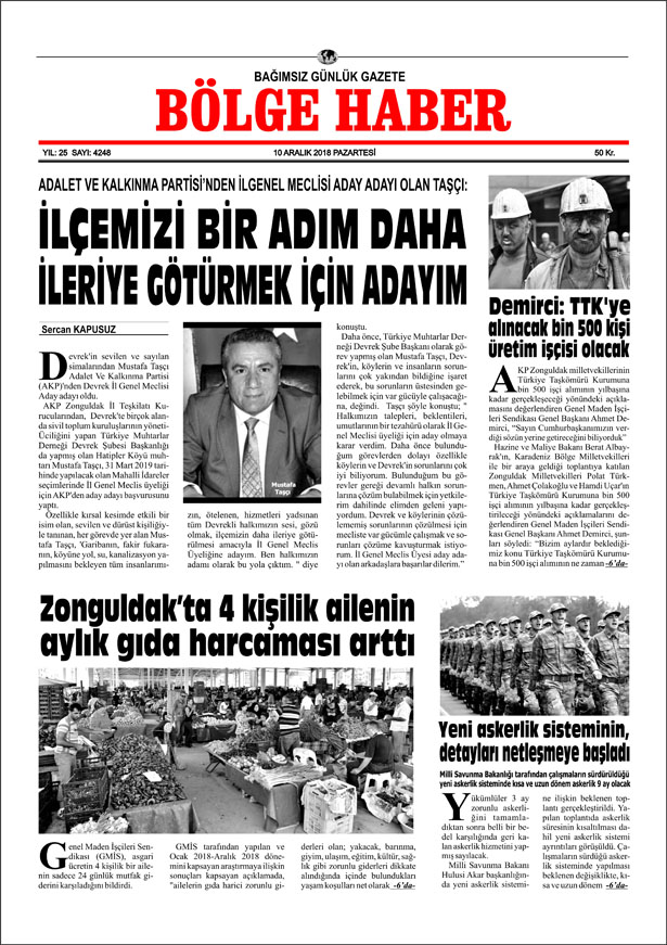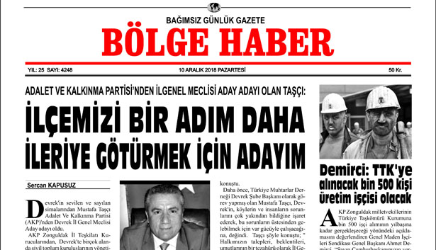 10/12/2018 BÖLGE HABER GAZETESİ... SABAH BAYİLERDE...