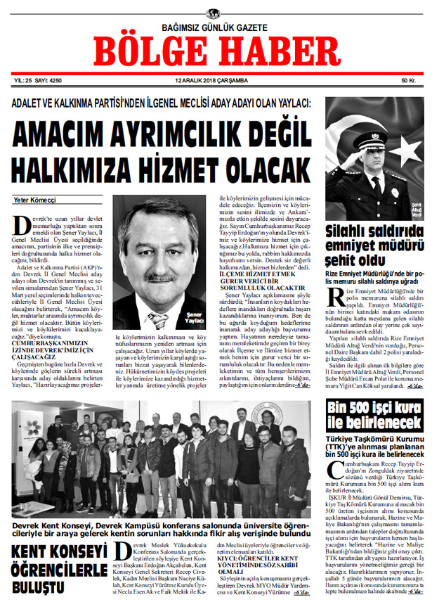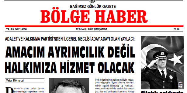 12 ARALIK ÇARŞAMBA 2018 BÖLGE HABER GAZETESİ... SABAH BAYİLERDE...