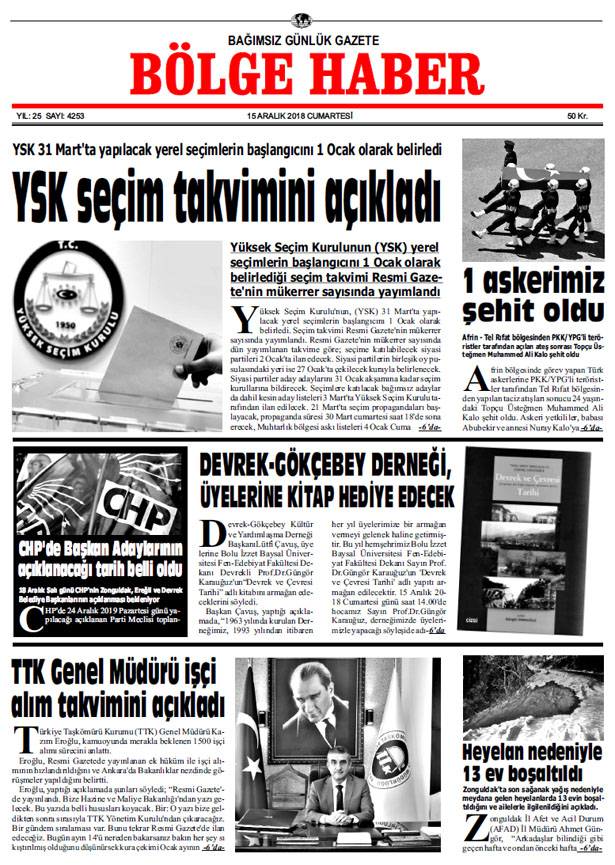 15 ARALIK CUMARTESİ 2018 BÖLGE HABER GAZETESİ... SABAH BAYİLERDE...