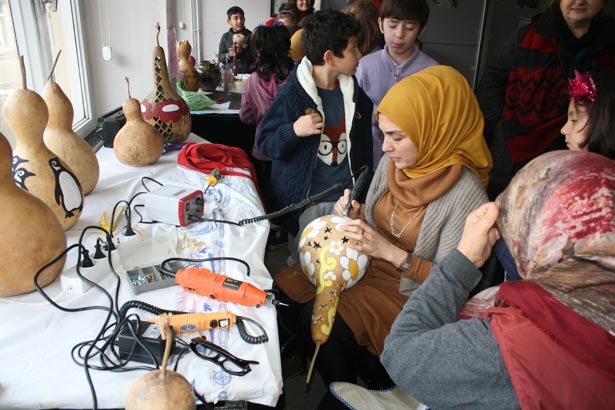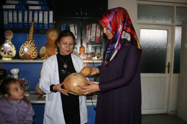 Devrek, Halk Eğitimi Merkezi'nin düzenlediği Su Kabağı İşleme Kursunda, su kabakları kursiyerlerin elinde avize ve gece lambası oldu.