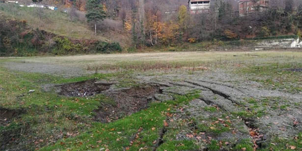 Zonguldakspor’a tesis olarak düşünülen Üzülmez Gönül Alışır Sahası daha önce altında açılan kaçak ocak nedeniyle çöktü.
