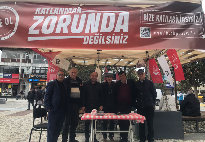 Cumhuriyet Halk Partisi (CHP) Devrek İlçe Başkanlığı “Sen de Katlanmak Zorunda Değilsin” sloganıyla üye çalışma standı açtı. Devrek Cumhuriyet Alanında kurulan stantta hem vatandaşlara parti çalışmaları hakkında bilgi veriliyor hem de vatandaşlar partiye üye yapılıyor.